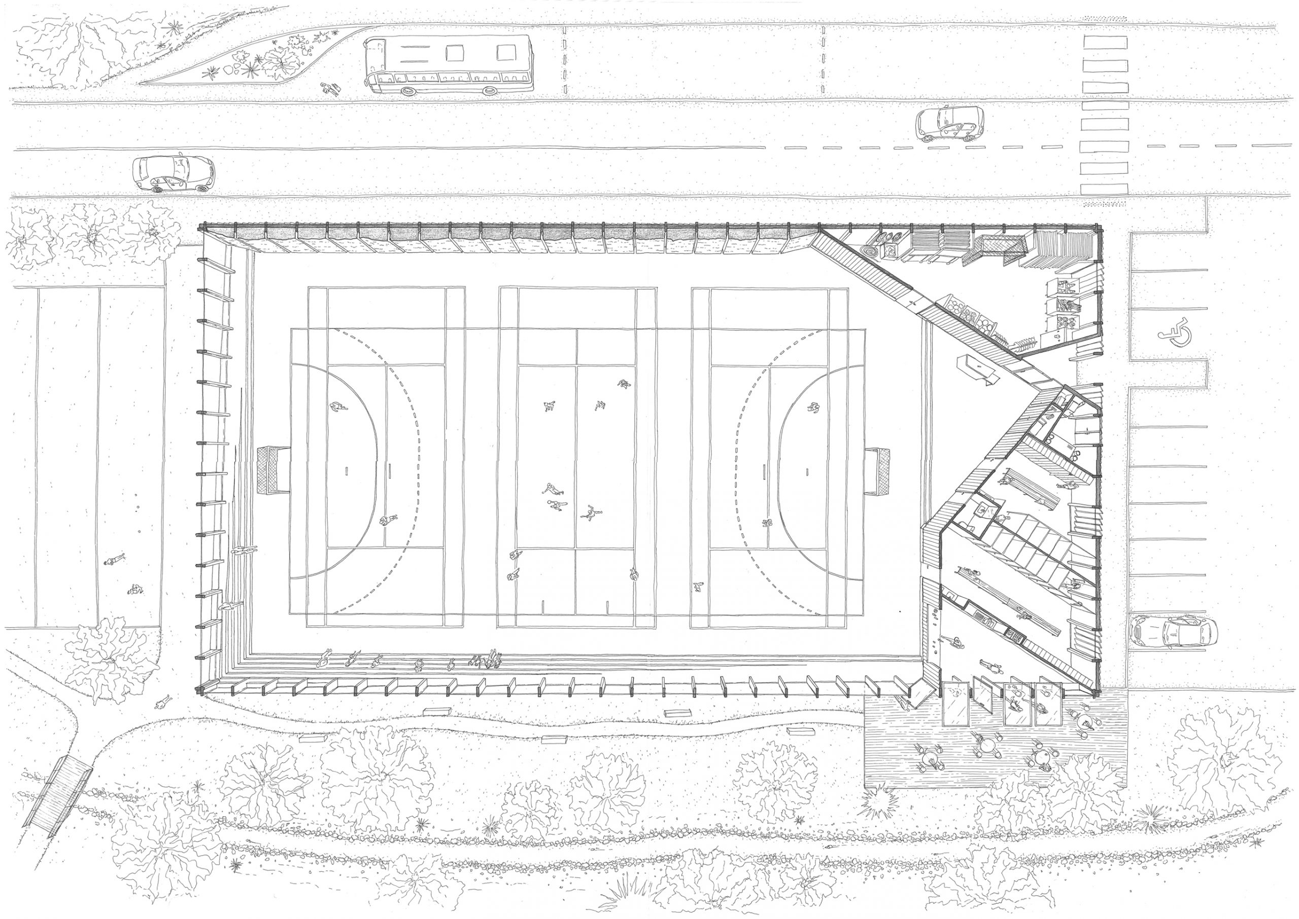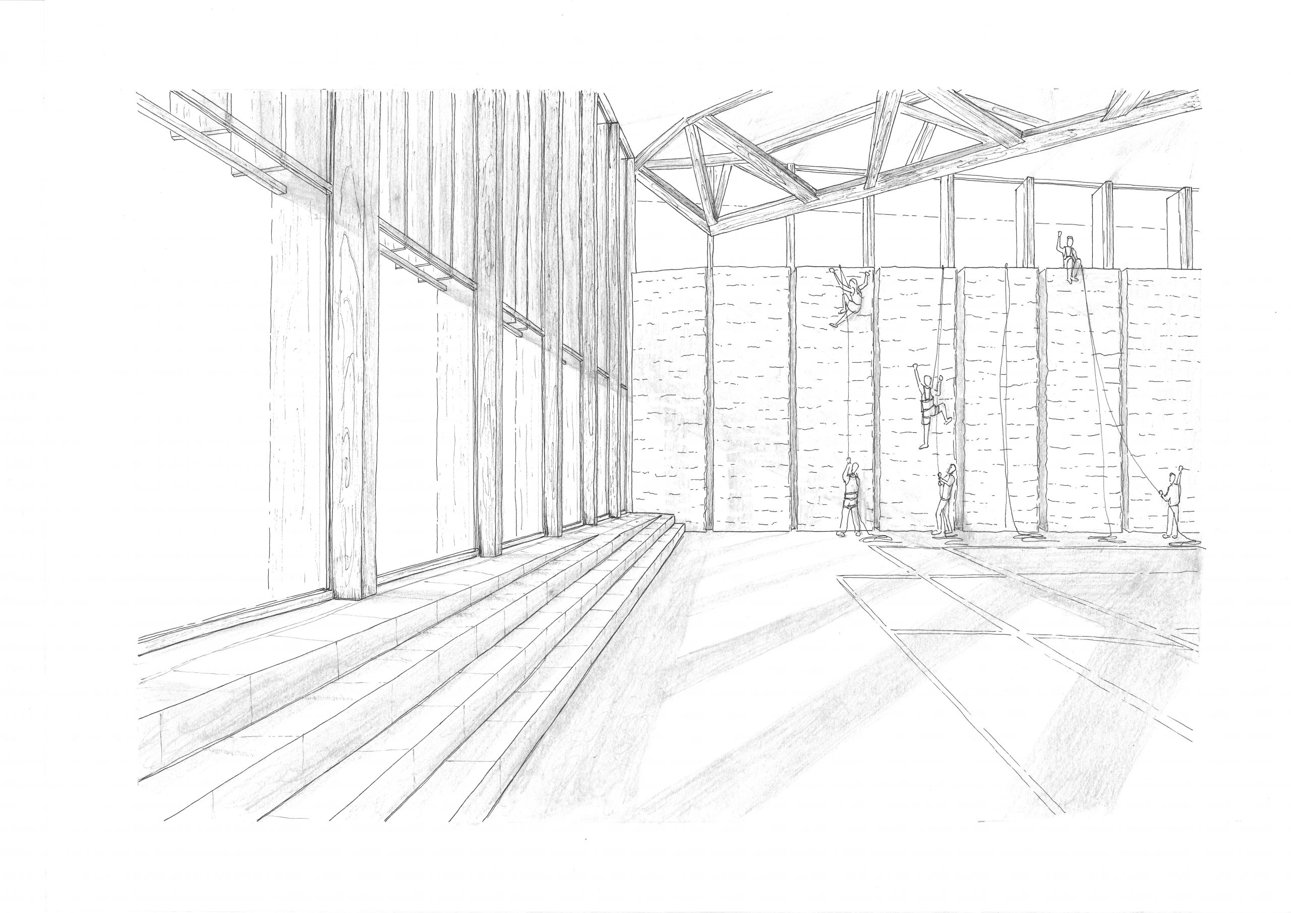 La phase projet portait sur la création d’un gymnase à Villard de Lans. L’idée principale de la conception reposait sur la capacité à utiliser les essences de bois locales associées à des assemblages traditionnels européens pour ainsi éviter le recours aux colles ou éléments métalliques tout en réalisant d’importants franchissements. La volumétrie, la répartition des espaces et les interactions entre le site et l’édifice étaient directement liés à la structure.